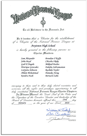 Charter chapters are the highest school membership honor in the league. A school is automatically chartered (receiving a certificate upon its initial charter; see the sample to the right):
