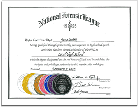 Each student who accumulates 25 points (10 of which must be earned in interscholastic high school competition) earns individual NFL membership, referred to as the degree of Merit. Coaches also earn individual membership upon accumulation of 25 points, based upon recording one-tenth of student points (275 student points = 27.5 coach points). A one-time $15 enrollment fee is assessed per new individual member.